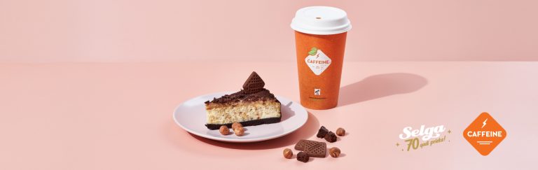 Svinot daudzu iemīļotā Selga zīmola 70 gadu jubileju, Caffeine radīta īpaša svētku kūka – Selga braunija siera kūka ar lazdu riekstiem. Bagātīgs siera kūkas pildījums, kraukšķīgi